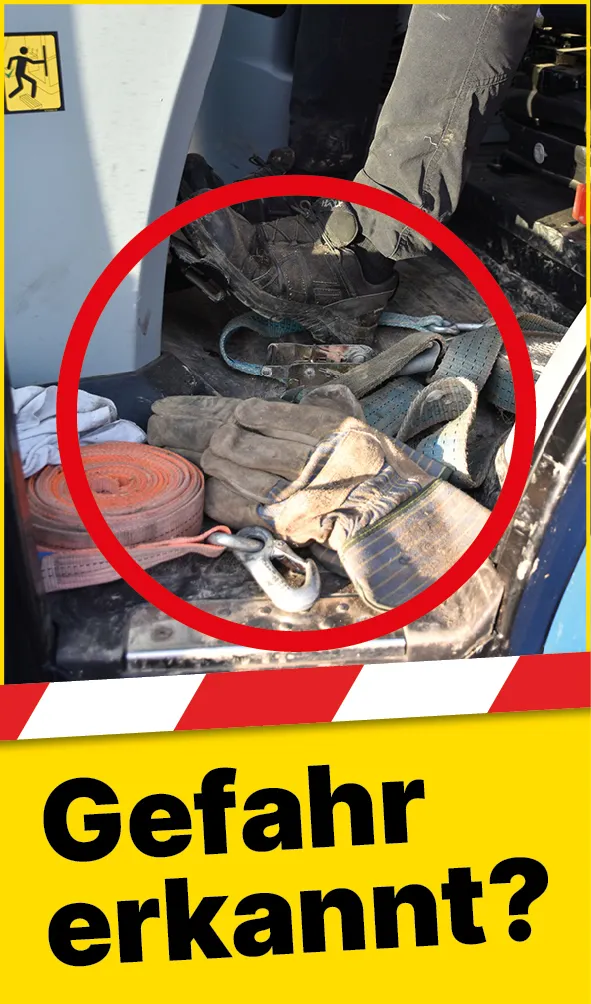 Herumliegende Werkzeuge, Zurrgurte, Handschuhe oder Flaschen können während der Fahrt Pedale blockieren, verrutschen und können ein sicheres Fahren beeinträchtigen. Im Falle einer Notbremsung oder eines Unfalls können lose Gegenstände zu gefährlichen Geschossen werden und schwere Verletzungen verursachen.