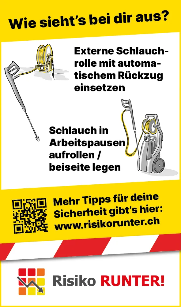 - In Bereichen mit regelmässiger Nutzung des Hochdruckreinigers: Externe Schlauchrollen mit automatischem Rückzug montieren.