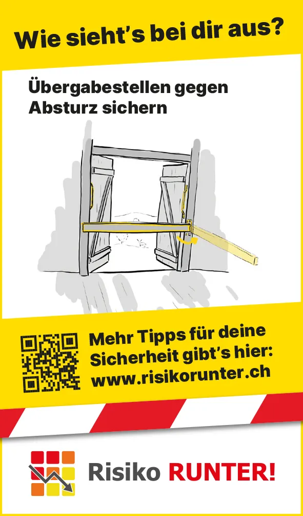 - Wandöffnungen, welche für die Materialübergabe genutzt werden, mit einer zweckmässigen Übergabestelle ausrüsten, welche den Absturz von Personen verhindert.