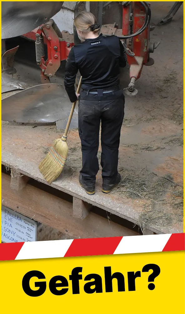 - Rampen gegen Wegrutschen sichern (z.B. bei Mistlagern in Anhängern, Mulden)