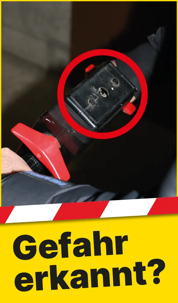 - Vor jedem Einsatz mit dem Gegendrucktest kontrollieren, ob die Verriegelung korrekt eingerastet ist – auch bei einer optischen Verriegelungsanzeige.