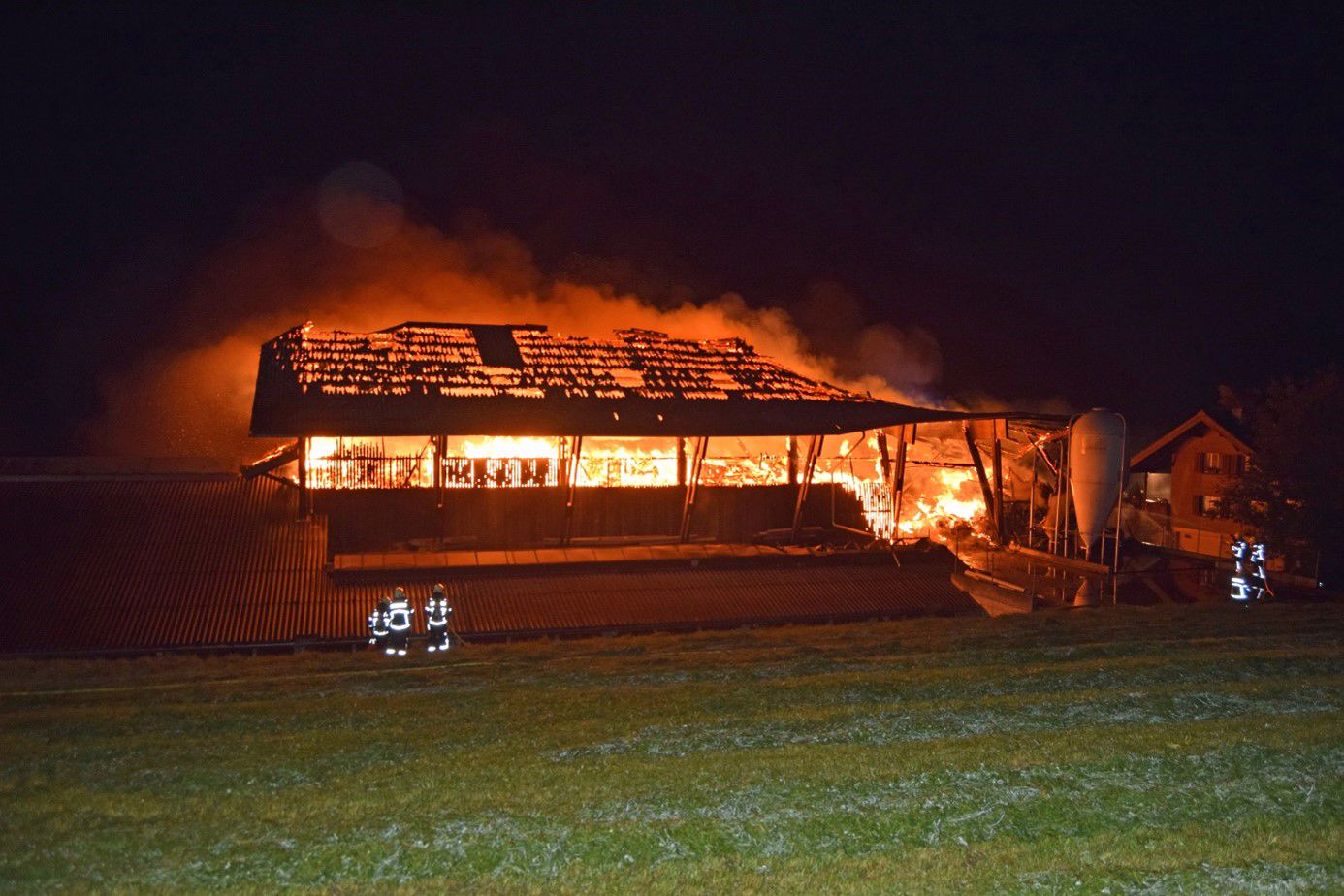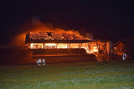 Eine Scheune brannte vollständig nieder. Beim Brand starben fünf Kühe und sieben Kälber. Die Brandbekämpfung gestaltete sich als schwierig, da insgesamt rund 400 Tonnen Heu aus der Scheune entfernt werden mussten und Löschwasser teilweise mittels Druckfässern vom nahen See hertransportiert werden musste.