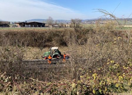 Ein Landwirt war mit einem Traktor auf dem Acker neben einer Eisenbahnlinie mit Feldarbeiten beschäftigt. Aus bislang unbekannten Gründen geriet der Traktor auf das Richtung Gleis abschüssige Wiesenbord. Er überschlug sich und touchierte einen zu diesem Zeitpunkt durchfahrenden Personenzug.
