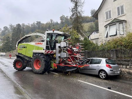 Der 49-jährige Automobilist konnte seinen total demolierten Wagen selbständig verlassen und kam mit leichten Verletzungen davon. Eine Ambulanz brachte ihn zur Kontrolle ins Spital. Der 29-jährige Fahrer des landwirtschaftlichen Fahrzeuges blieb unverletzt. Dieses wurde ebenfalls beschädigt.