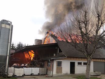 Mehrere Personen waren damit beschäftigt, in einer Scheune Heuballen zu pressen. Das Heu wurde mit einem Heukran der Ballenpresse zugeführt. Dabei fiel Heu aus der Zange des Kranes auf das Rohr, welches zur Ableitung der Abgase des Traktors aus dem Gebäude installiert war. Dieses Heu entzündete sich am heissen Rohr und löste den Brand aus.