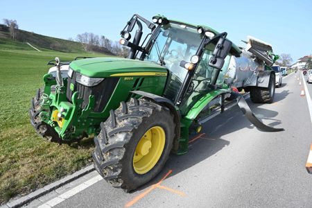 Ein 57-jähriger Mann fuhr am Samstag, 07.03.2026 mit seinem Traktor auf der Hauptstrasse von Waldbach Richtung Zuckenriet (SG). Gleichzeitig fuhr der 65-jährige Autofahrer mit seinem Auto in die entgegengesetzte Richtung. Kurz vor dem Dorfeingang Zuckenriet löste sich der hintere linke Reifen des Traktors und rollte auf die Gegenfahrbahn, wo er frontal mit dem entgegenkommenden Auto des 65-Jährigen kollidierte. Dieser wurde durch den Unfall leicht verletzt und vom Rettungsdienst ins Spital gebracht. Am Auto und am Traktor entstand Sachschaden im Wert von rund 20'000 Franken.