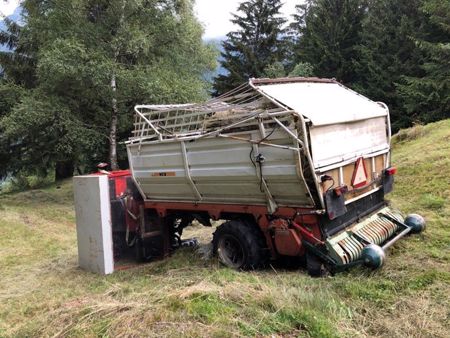 Ein 47-jähriger Landwirt war mit einem Transporter am Heu aufladen. Quer zum abfallenden Gelände unterwegs, fuhr das linke Hinterrad auf einen grossen Stein auf. Die Führerkabine kippte in der Folge nach links und ein Bein des Landwirts wurde darunter eingeklemmt.