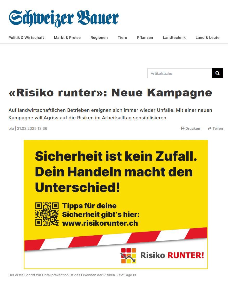 Beitrag vom Schweizer Bauer: «Risiko runter»: Neue Kampagne, 21.03.2025