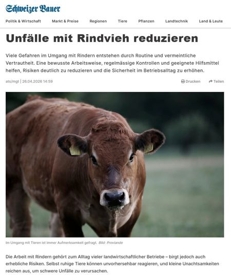 Beitrag Schweizer Bauer : Unfälle mit Rindvieh reduzieren, 26.04.2026