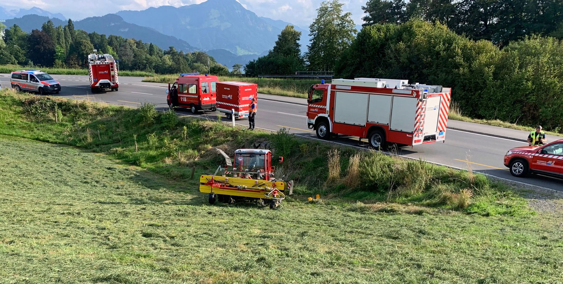 Am Mittwoch, 16. August 2023, ca. 17:00 Uhr war ein Mann in Luzern, Gebiet Wartenfluh, mit landwirtschaftlichen Arbeiten beschäftigt. Gemäss seinen Aussagen habe er sein Fahrzeug gestoppt und sich zwischen Traktor und Bandrechen begeben. Aus noch ungeklärten Gründen sei das Gefährt ins Rollen gekommen und habe ihn eingeklemmt. Der 21-jährige Mann wurde durch die Rettungskräfte geborgen und ins Spital gefahren. Er zog sich beim Unfall erhebliche Verletzungen zu.
