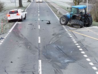Tôt le matin, une voiture de tourisme circulait sur une route droite et large. Soudain, il y a eu une violente collision par l'arrière avec un tracteur roulant dans la même direction. Personne n'a été blessé.