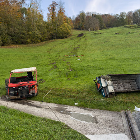 Am Mittwoch, 06.11.2024, um ca. 15:45 Uhr, war eine 29-jährige Lenkerin eines Landwirtschaftsfahrzeugs in Giswil OW, im Gebiet Flüe (oberhalb Gorgen), unterwegs. Ersten Erkenntnissen zur Folge, kam das Fahrzeug ins Rutschen und stürzte rund 90m übers steil abfallende Wiesland ab. Die Lenkerin wurde aus dem Fahrzeug geschleudert und lebensbedrohlich verletzt. Sie musste durch den Rettungsdienst in ein ausserkantonales Spital gefahren werden. Am Fahrzeug entstand Totalschaden.