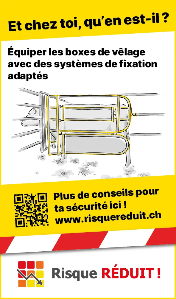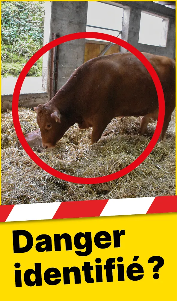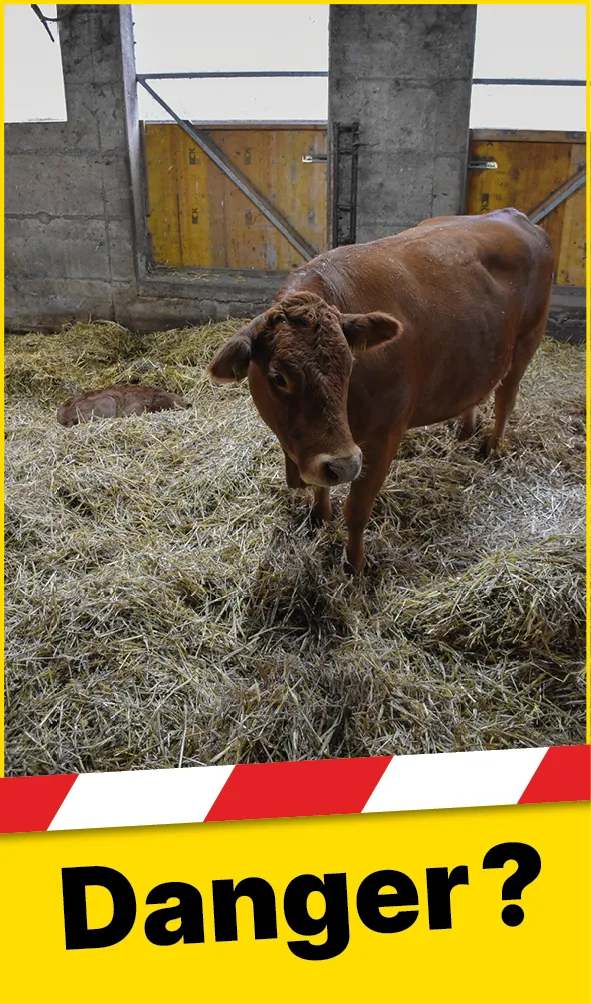 Les vaches mères avec des veaux nouveau-nés ou jeunes manifestent souvent un fort instinct de protection, qui peut également s’exercer contre les personnes pourtant familières qui s’occupent des animaux. Lors de l’aide au vêlage ou lors de l’approche et d’intervention sur le veau (p. ex. contrôle du nombril, marquage des oreilles, etc.), il existe un risque élevé d’attaque par la vache.