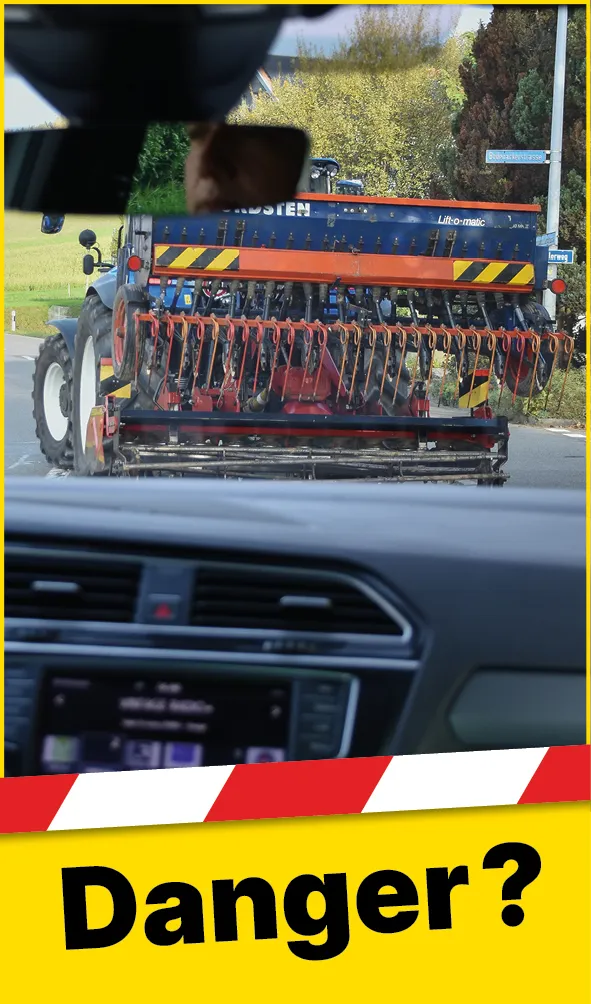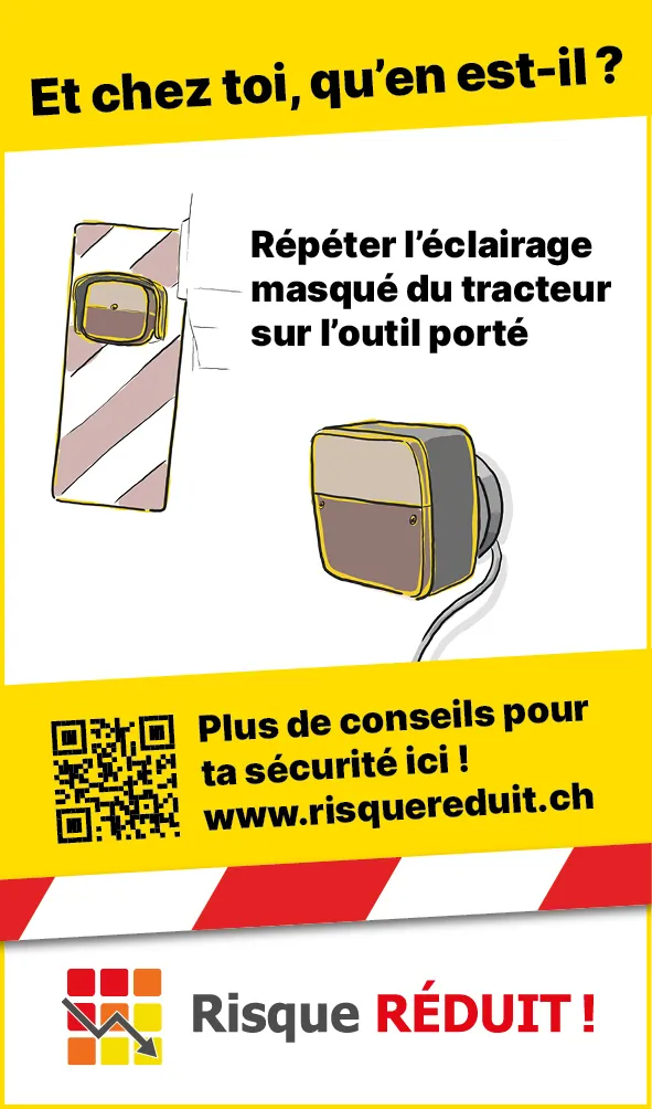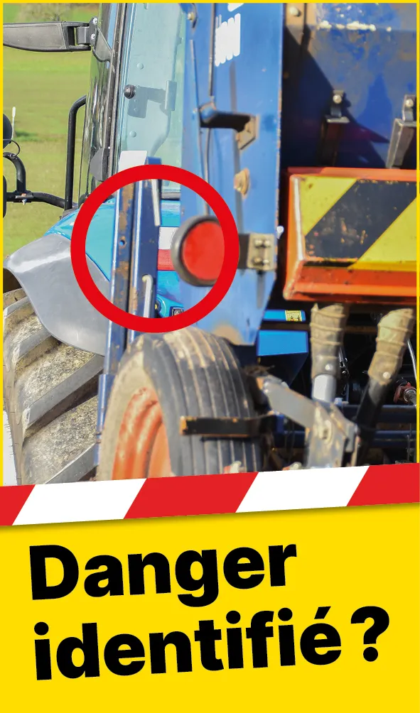 Si l’éclairage ou les clignotants du tracteur sont masqués par un outil porté, le risque d’accident sur la route augmente considérablement. Les autres usagers ne peuvent pas anticiper les manœuvres, comme un virage ou un freinage, ce qui peut entraîner des situations dangereuses.