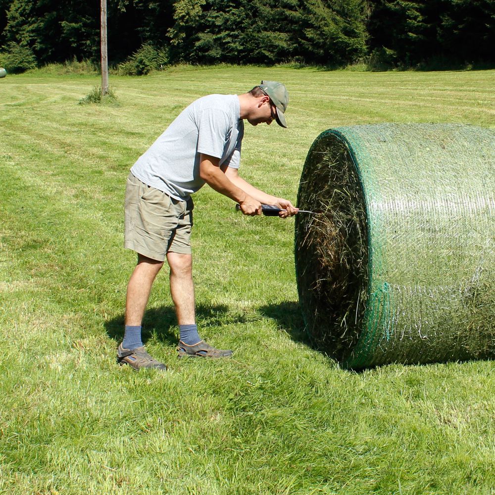 Lors du stockage des fourrages, le bon taux d’humidité est important; il évite les moisissures et les risques d’échauffement. Détermination du taux d’humidité de fourrages pressés en piquant avec la sonde. Mesure d’humidité de 8 à 44%, mesure de température de 0 à 107°. Sonde robuste de 50 cm de long, afficheur numérique LCD 13 mm, lecture facilitée, éclairage déclenchable.