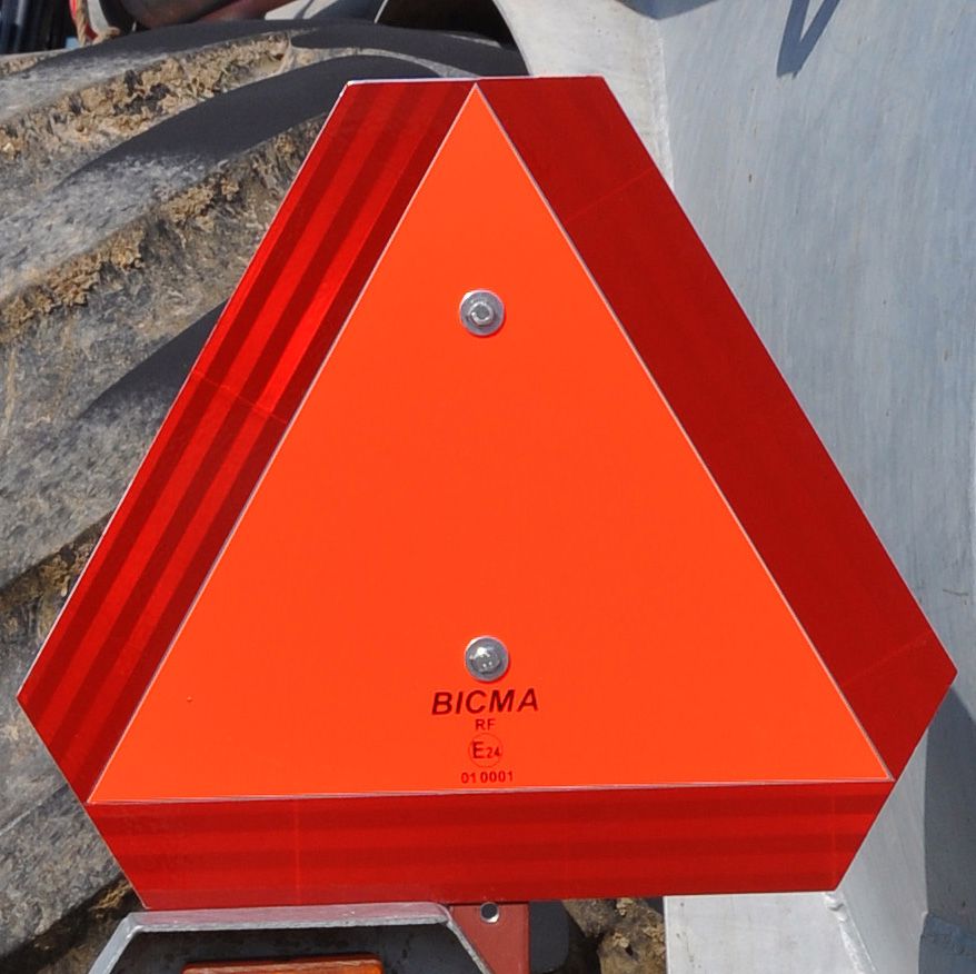 Grâce aux triangles «véhicules lents» les véhicules agricoles sont aperçus plus vite. Obligatoires depuis le 1er juillet 2009 jusqu'à 45 km/h.