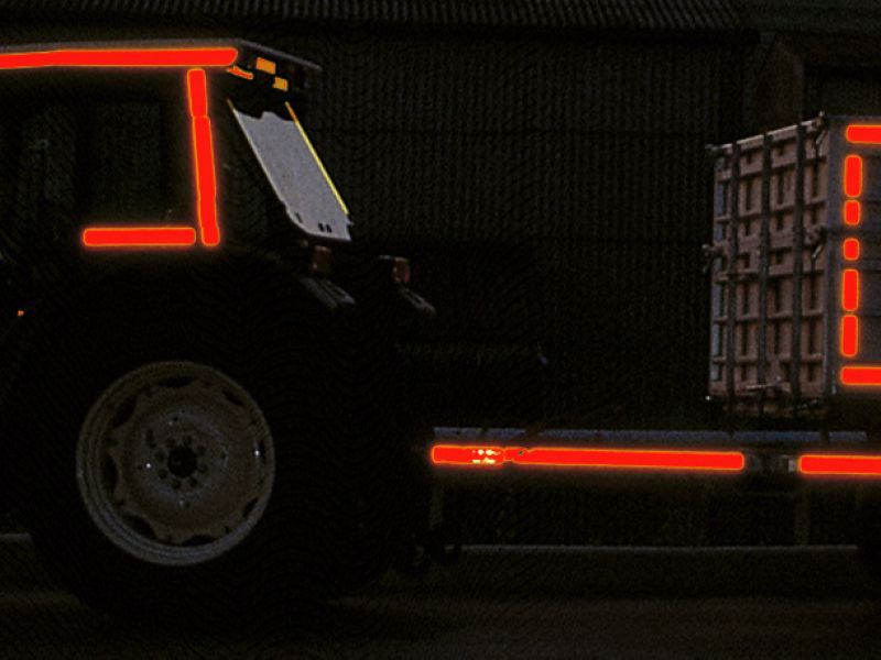 Les remorques d’une longueur supérieure à 5 m doivent être équipées sur le côté de catadioptres orange ou rouge. Les bandes réfléchissantes sont encore mieux visibles.