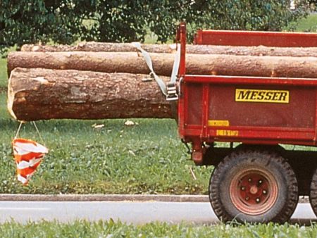 En bas cône pliable rouge/blanc, avec surface réfléchissante. Les parties de machines ou de tracteur formant un porte-à-faux arrière de plus de 1 m doivent être signalées au moyen d’une pyramide.