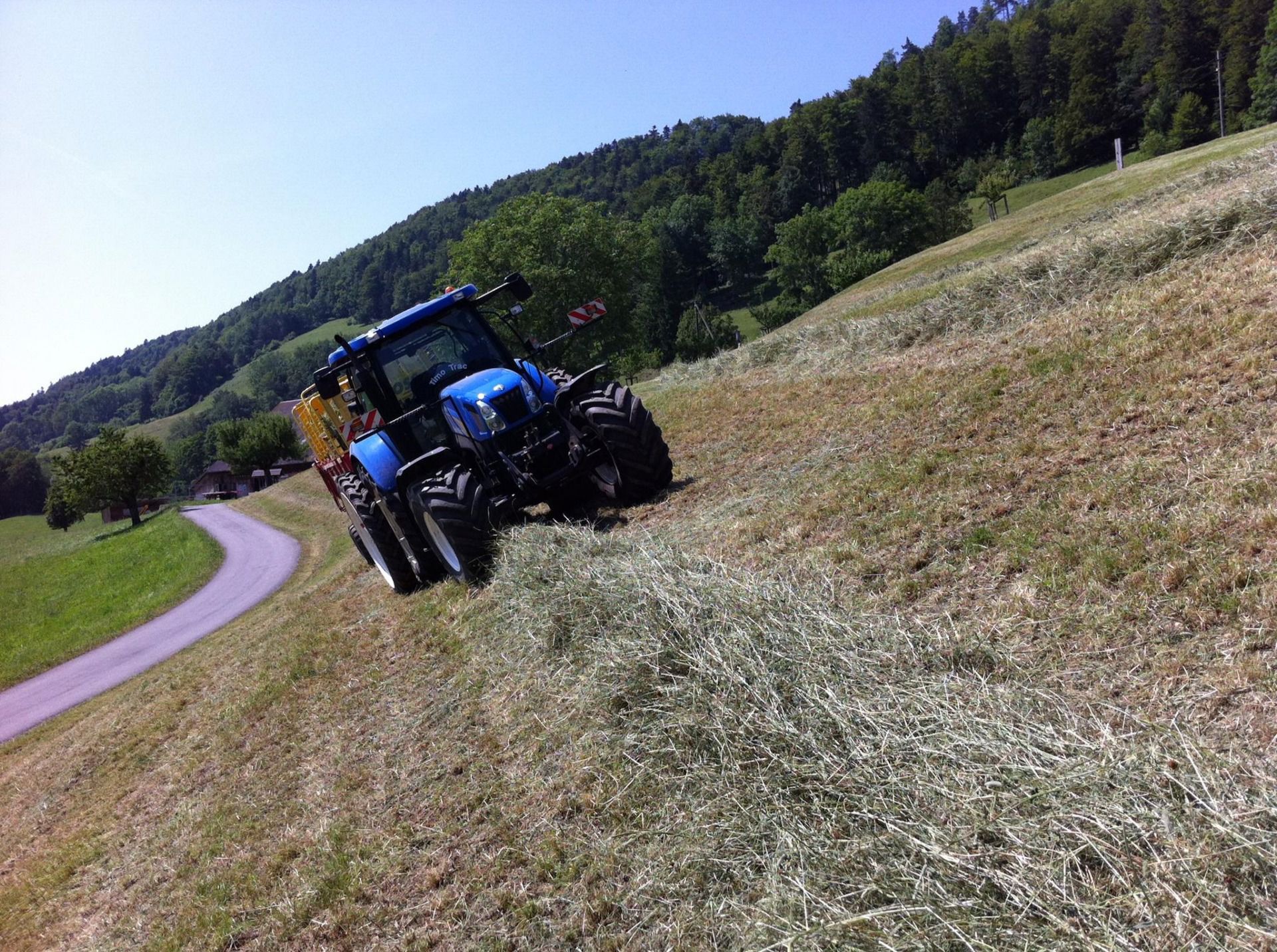 Das Arbeiten mit landwirtschaftlichen Fahrzeugen in Schräglagen oder Steigungen birgt Gefahren. Für das Fahren in solchen Bedingungen müssen die Sicherheitsregeln beherrscht werden.
