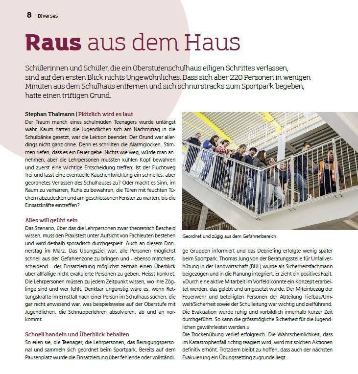 Rischer Zeitung: Beitrag zur Evakuierungsübung im Schulhaus, 03.05.2024