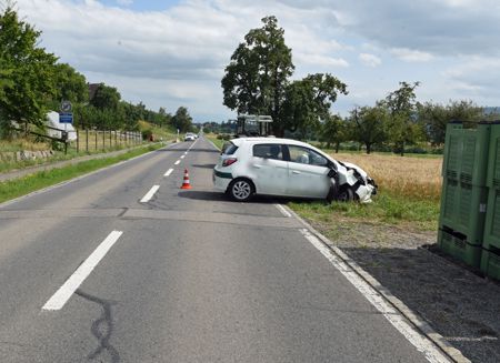 Verkehrsunfall: Kollision zwischen Auto und Traktor – eine Person leicht verletzt, 17.07.2023