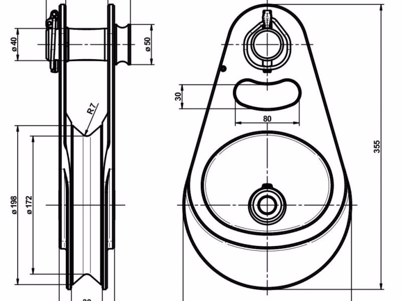 Seilrolle LT-rot 2, 170 kN Nutzlast (Breite Version)