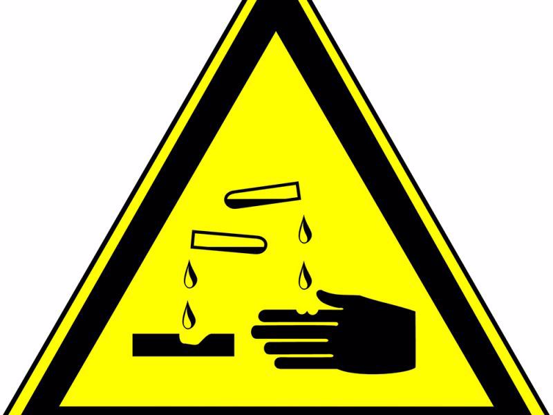 Warnzeichen Ätzende Stoffe, Alu, 20 x 20 cm