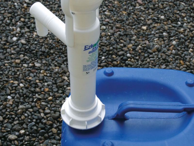 Geeignet für 200 l. Der Bügel über der Pumpe bietet eine Sicherung gegen ungewolltes Betätigen der Pumpe.