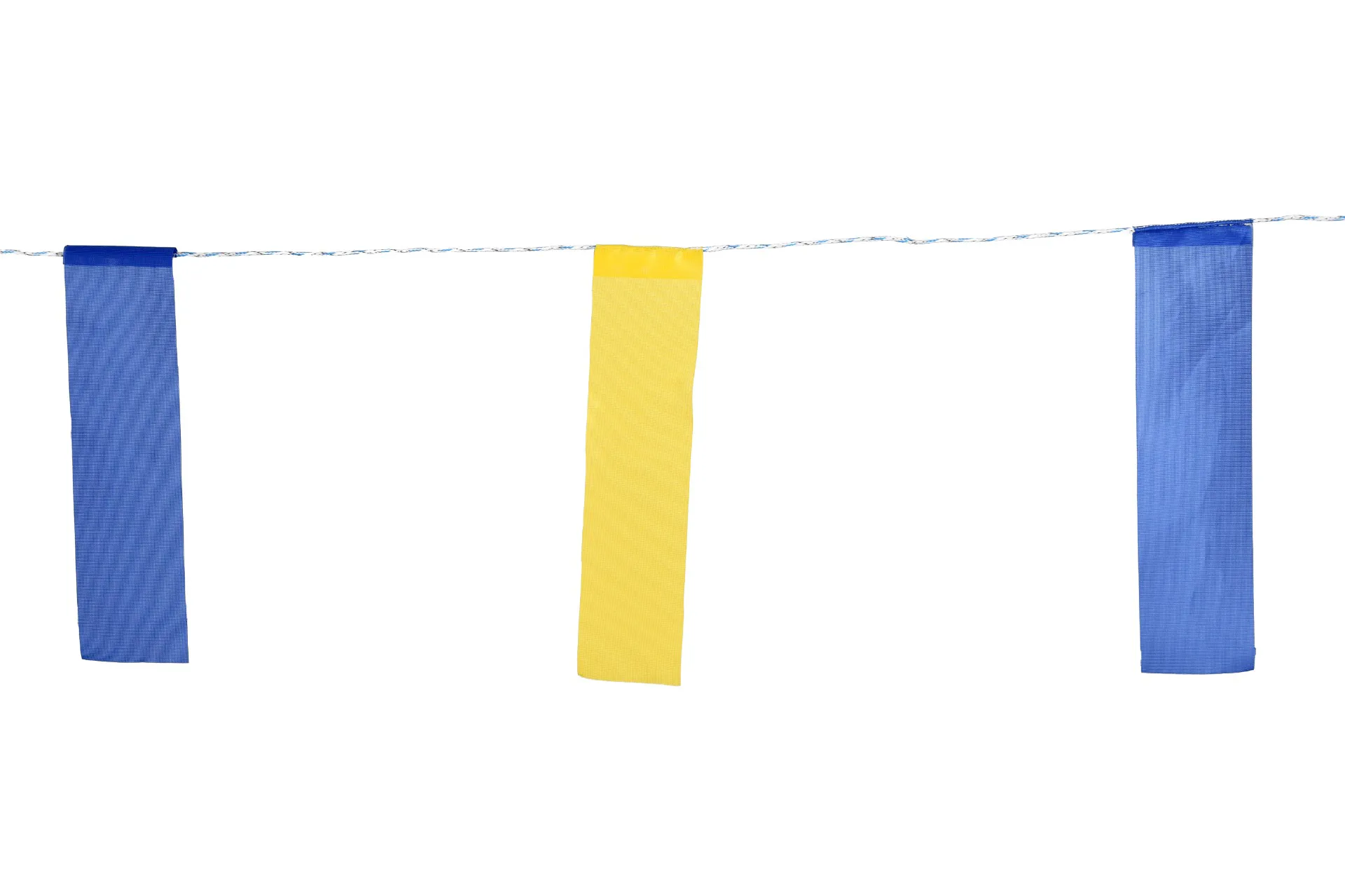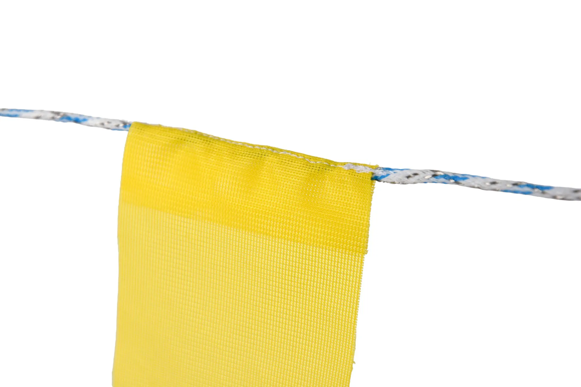 Turbo-Fladry Zwirn ist ein hochwertiges, elektrifizierbares Fladry-System und ein wirksames Mittel im Herdenschutz. Die robuste Trägerlitze ist mit auffälligen gelben und blauen Fladry-Streifen versehen, welche die Abschreckung von Wildtieren effektiv unterstützen.